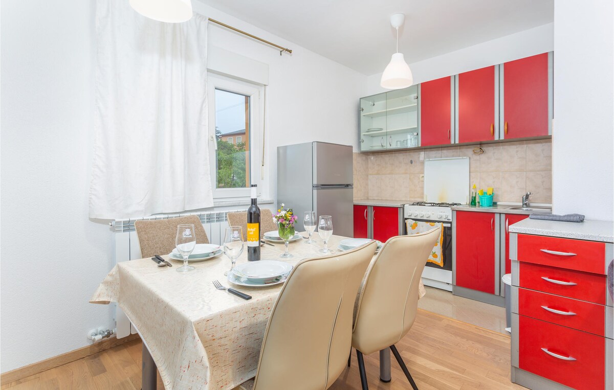 Newly renovated apartment for four people. The apartment is composed of two bedroom, a bathroom, a living room and kitchen. The kitchen is well-equipped with every household appliance from the washing machine and the dishwasher to the fridge with freezer and oven. The bathroom features a walk-in shower and floor heating. Smart-TV with numerous channels and free Internet access. The apartment can be combined with our other listing (Ravan-1) providing room for up to 8 guests.
