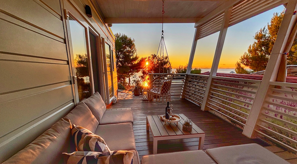Welcome to our brand new home sorunded with pine forest and sea!! Size of house is 36m2, terrace is 18m2 and backyard 40m2. Free parking is in front of house. Cozy, beautiful, peaceful, luxury home located in four star camping Oaza Mira. Beautiful beach and nature in front and all around you. You have everything you need in one place - restaurant, pool with sea water, market, tenis court, mini golf, children playground and lots more. Beaches are only one minute of easy walking from our home!