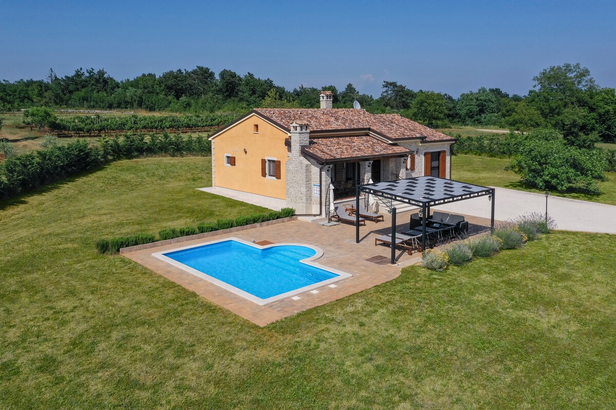 This beautiful stone holiday house is a heartfelt tribute to traditional Istrian style and the peaceful rhythm of countryside living.Every corner of its 124m² interior radiates warmth and comfort, featuring three bedrooms, bathrooms, and equipped kitchen that opens into a cozy, inviting living room. Beyond the walls of the house lies its most captivating feature a sprawling 3,000m² estate that offer a total privacy and natural beauty. The heart of the garden is pool with loungers and sunshades.