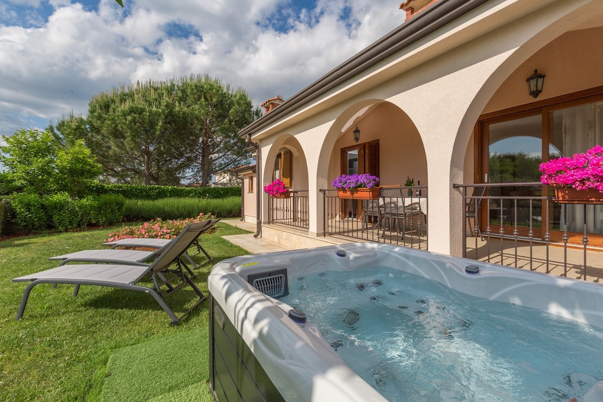 Die Villa Vinomore in Vabriga bietet Ihnen Wald- sowie Poolblick. Das Meer ist fußläufig in wenigen Minuten erreichbar. Von der Villa aus ist man in wenigen Minuten bei Bars, Restaurants, dem Naturstrand und den Supermärkten. Das Haus mit seinen Annehmlichkeiten lädt zum Chillen & Grillen ein. Im Pool erfrischen Sie sich und schauen Ihren Kindern beim Klettern oder Trampolin springen zu - im Whirlpool entspannen Sie sich...ist das nicht phantastisch?