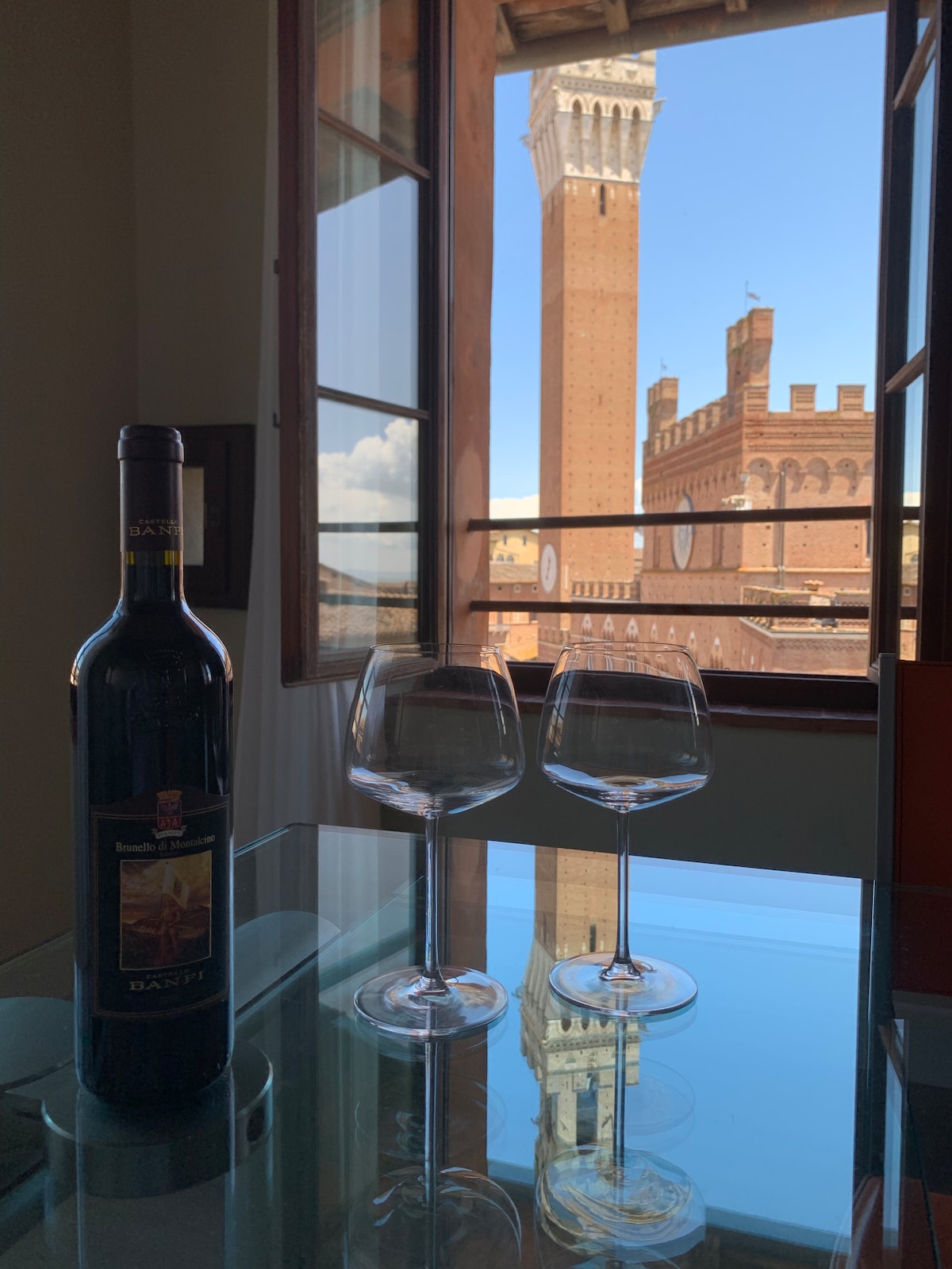 The 800-year-old Palazzo Accarigi, a Palazzo-Tower overlooking Piazza del Campo, offers a dreamy suite for Honeymoons and Anniversaries. As inside a fairy-tale, you will sleep in a princely baldaquin with a magnificent view of Piazza del Campo, while the highest quality noise-reducing windows will ensure you the quietest stay. This suite offers a private and safe place to live the most authentic Tuscan lifestyle: plan to stay more days, use this flat as a base to explore Siena province.