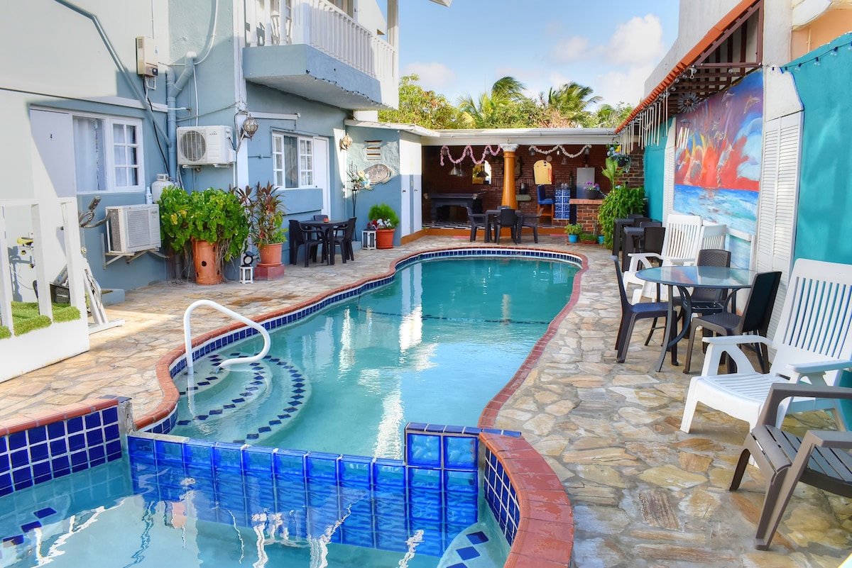 Bienvenido a nuestro acogedor apartamento de un dormitorio ubicado convenientemente cerca del bulevar Watty Vos. Este encantador espacio, perfecto para parejas, cuenta con una cómoda cama tamaño queen y está equipado con todas las comodidades modernas que necesitas. Para explorar completamente la hermosa isla de Aruba, te recomendamos alquilar un auto durante tu estancia. Viviendo al lado, estamos disponibles para asegurarnos de que tengas unas vacaciones agradables y sin estrés. ¡Ven y experimenta lo mejor de Aruba desde nuestra acogedora morada!