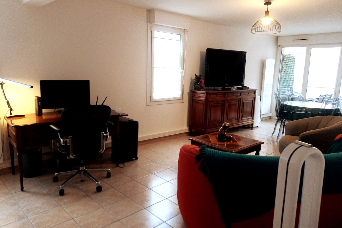 3-key accommodation (CléVacances), located in the market garden district, quiet residence, 12 minutes walk from the old town. Close to the train station, highway and shops (supermarket, pharmacy, bakery). Private parking. Equipped kitchen (induction hob, dishwasher, oven, microwave, fridge, toaster, kettle, coffee machine). Living room with table, large format TV, internet. Balcony with furniture. Bathroom Italian shower washing machine, dryer, hair dryer. ARRIVALS UNTIL 7:30 PM