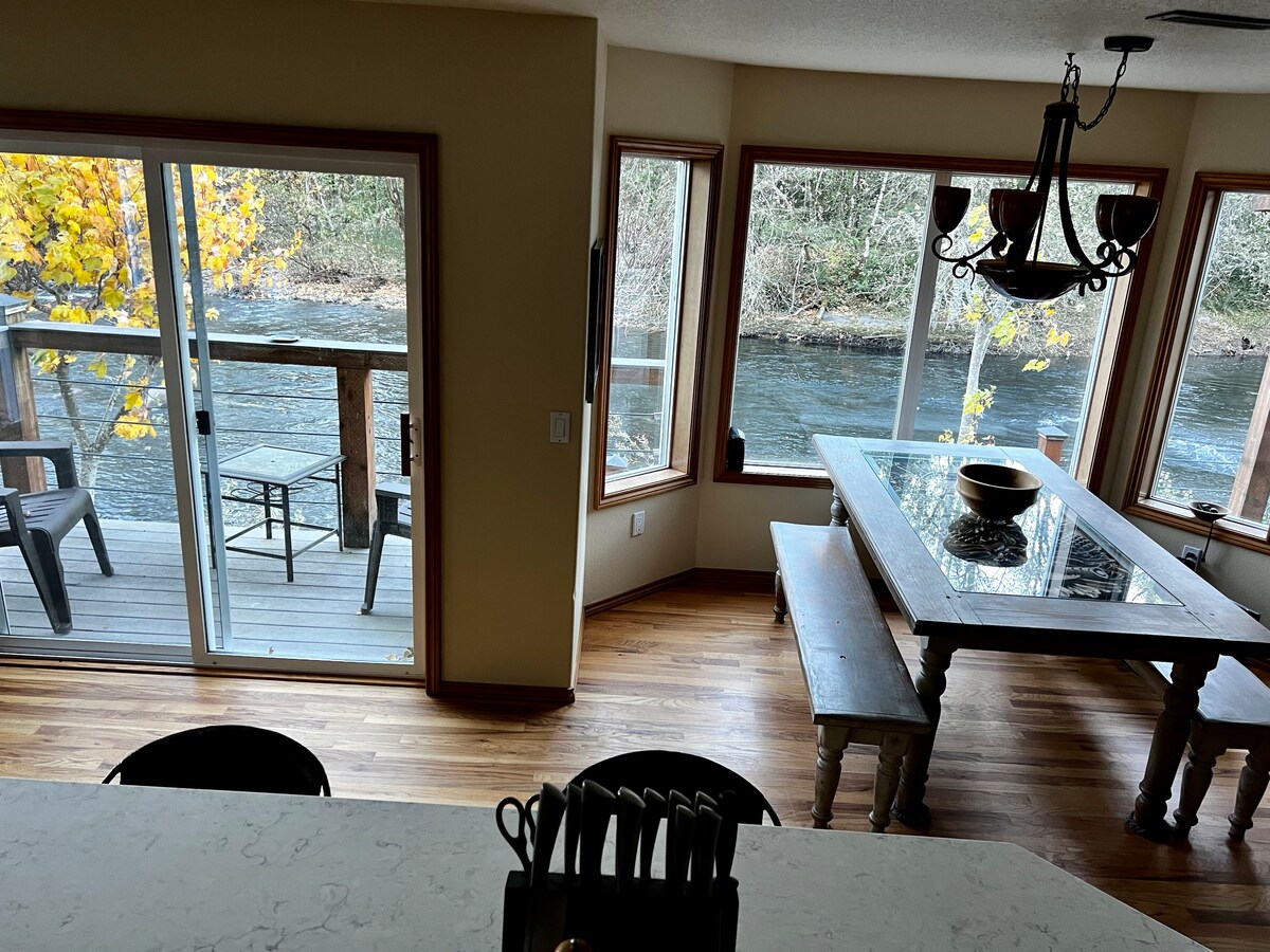 La casa McKenzie se encuentra en 2,5 acres privados y tranquilos en el majestuoso río McKenzie, a media milla a pie de Loloma Lodge. Un paraíso para pescadores con mosca, ciclistas, excursionistas y esquiadores. Disfruta de una sauna frente al río, ducha caliente al aire libre, jacuzzi y acceso seguro y fácil al río. Barbacoa en la terraza frente al río, pícnic junto al agua o en el prado, pasear por el bosque, recoger moras. Disfruta del voleibol o las herraduras, fogatas, siestas en hamacas, columpios sobre el río, pesca justo delante de la cubierta y mucho más.