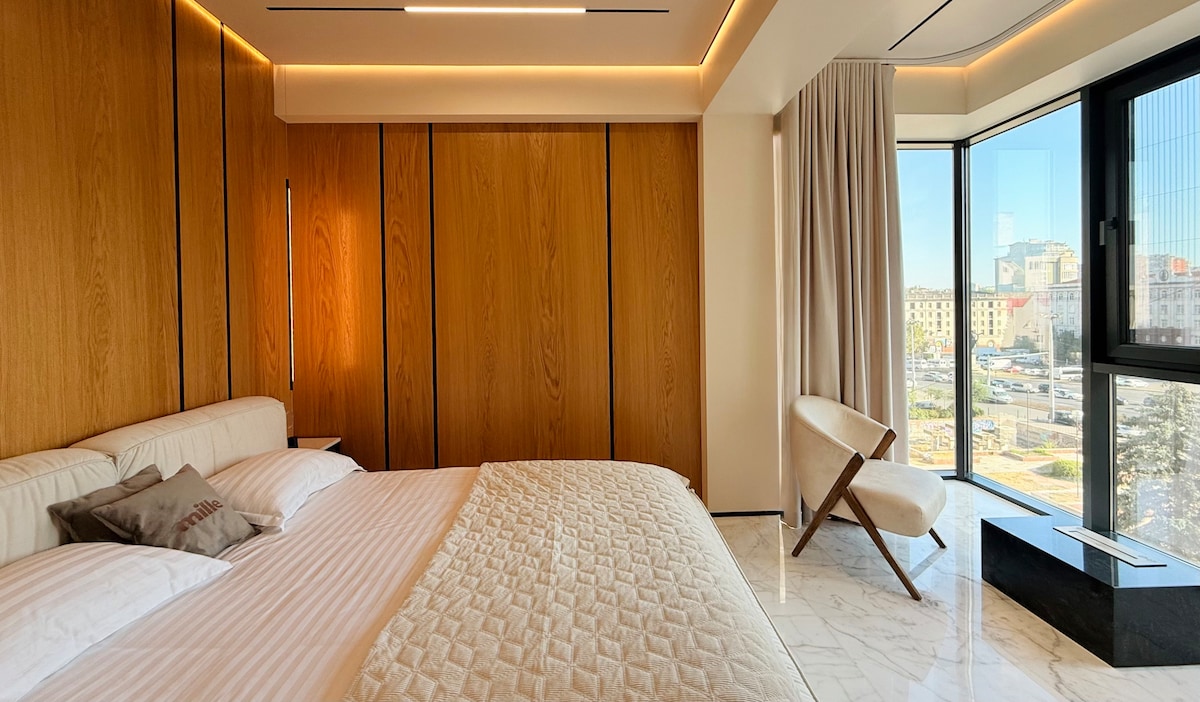 Un alojamiento ideal para aquellos que buscan algo especial y una excelente ubicación para explorar la ciudad. Este increíble apartamento tipo estudio se encuentra en el centro histórico de Chisinau, a poca distancia a pie de restaurantes, centros comerciales y de las principales atracciones turísticas. El apartamento ha sido bien diseñado, creando un ambiente cómodo y elegante para tu estancia. Ubicado en el piso 15, tiene grandes ventanales con vistas panorámicas a la ciudad sin ningún edificio que interfiera.
