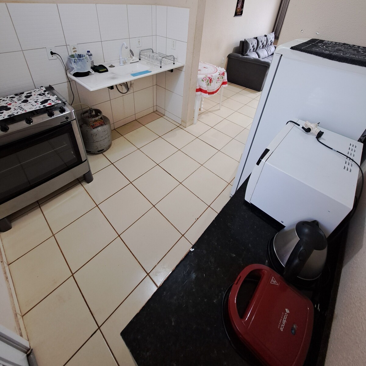A acomodação possui 02 vagas de garagem. Sala com 01 sofá retrátil, ventilador de teto e portátil, rack com TV 32" com canais fechados, Wi-Fi, 01 mesa, 04 bancos. Cozinha com 01 armário, geladeira, fogão 05 bocas, micro-ondas, chaleira elétrica, sanduicheira e utensílios de cozinha. Quarto com 01 cama box casal, ventilador de teto, armários e arara. Quarto com 02 camas de solteiro, ventilador de teto e armário. Banheiro com armário, espelho e chuveiro.