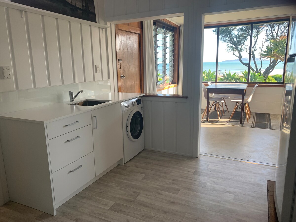 Bach frente a la playa en Wainui Beach. Fantásticas vistas, independientemente del clima, impresionante playa de surf, el bach lo da a todo. ¡Increíble el sol, mantén las cortinas abiertas y ten un capricho! La cabaña tiene una cama queen en un anexo en el área principal para que puedas despertarte con la vista o ver las olas por la noche bajo la luna. Hay literas en el dormitorio, una bomba de calor para tostar inviernos, este lugar es una humilde pieza rústica de vida de playa de kiwiana, un espacio de rejuvenecimiento total y un paraíso para los surfistas.