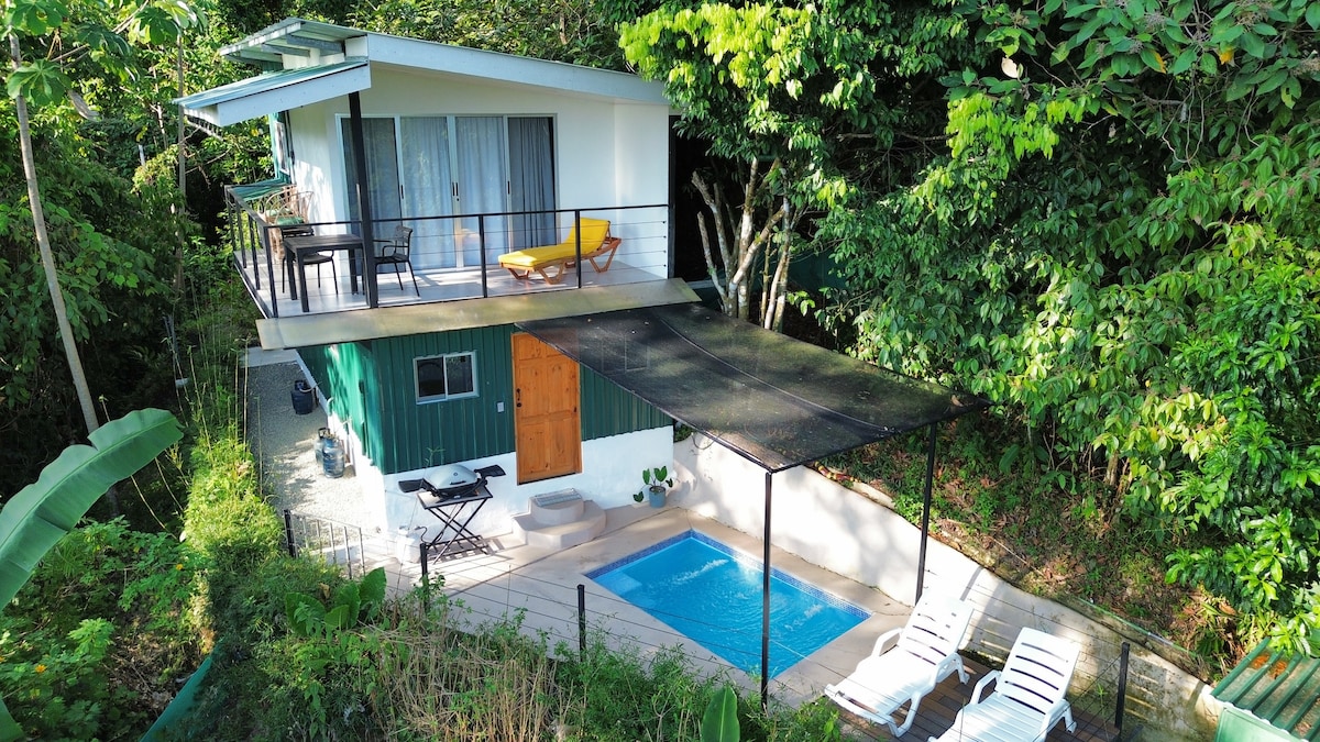 Casa moderna 2hab 2ba en la montaña, en una selva lluviosa con vista al mar. Ubicada en lo alto de Uvita, te sentirás desconectado, ¡a solo 12min del centro y con wifi RÁPIDO! Las vistas de 180° te sorprenderán. Y por supuesto, hay una piscina para refrescarte mientras disfrutas de unas vacaciones inolvidables en un oasis de 66 acres entre las nubes. Ya sea café, té, vino, bebida fría... ¡será perfecto para acompañar una puesta de sol costarricense! 25$ por adicional persona por noche.