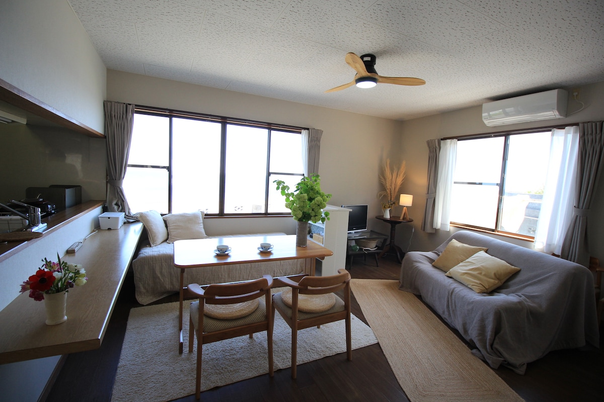 ¡A 1 minuto del Océano Pacífico! Es una meticulosa casa de renovación, situada cerca del "Túnel que conduce al mar", un famoso lugar de tiro fotogénico. Al amanecer y al atardecer, en cualquier momento que puedas visitar la orilla. Sin límite, sin pared, solo el horizonte y el cielo. El interior de esta casa está totalmente renovada para una estancia cómoda. La cocina, el baño y el inodoro , la lavadora y la secadora están instalados y son gratuitos. ¡Una pareja o familia de 2 a 4 personas está en suite aquí! Además, a 6 minutos a pie desde Hakone Loop.