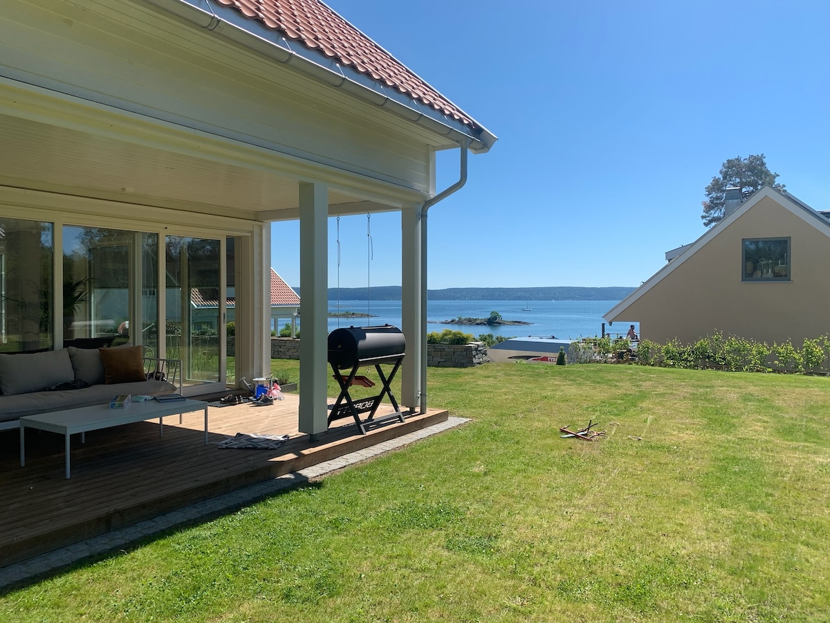 Tres casas en una gran propiedad frente al mar. La casa principal está recién renovada y tiene 5 dormitorios/2 baños. Dos casas más pequeñas, cada una con aseo/baño, cocina y dormitorios. Perfecto para familias numerosas o grupos de compañeros. No aceptamos grandes grupos de amigos de fiesta. La zona es tranquila, pero aún muy cerca de Oslo, a solo 8 minutos a pie del ferry que te lleva a Oslo en 24 minutos. El estacionamiento está disponible en la propiedad. Tenemos dos gatos que se quedarán en la casa durante tu estancia.