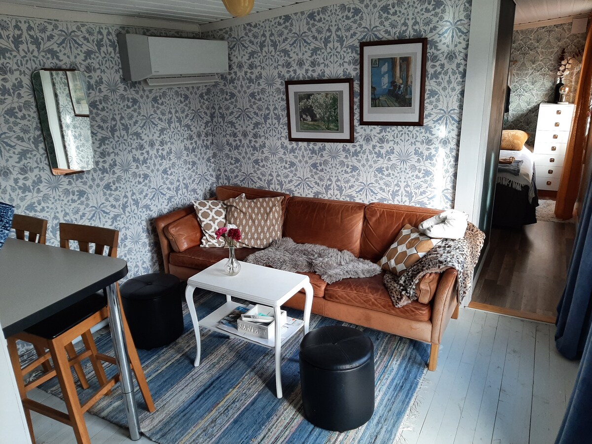 Una acogedora casita recién renovada de unos 50 m2 con cocina, dormitorio, salón con sofá cama y aseo con ducha. La casa está situada en Eggby, a unos 10 minutos en coche del hipódromo de Axevalla, Skara sommarland, la iglesia del monasterio de Varnhem y el lago Hornborgasjön. A poca distancia a pie de la playa y cerca de la naturaleza y de rutas ciclistas. A 300 metros de una tienda abierta 24/7. Hay 1 cama doble, 1 sofá cama y 1 cuna. Traiga sus propios artículos de higiene, sábanas y toallas. Se admiten mascotas. No se permite fumar en el interior.