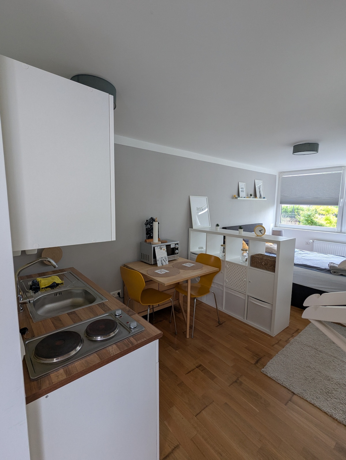 Gerne würde ich Euch in meiner stylischen und hellen Ferinwohnung im 1.OG, in die ich viel Herzblut gesteckt habe, begrüßen. Es gibt 2 getrennte Schlafzimmer mit je einem großen Bett, plus eine Schlafcouch und ein Gästebett im Wohnzimmer. 1 großes Bad - Dusche +Badewanne, sowie einen Ess- und Arbeitsbereich. Bitte beachten : keine Küche . Küche befindet sich aktuell in Bau. Kaffee+Tee ist gratis. Kühlschrank , Mikrowelle ,Kaffee- Wasserkocher , 2 Baby Reisebetten inklusive Bettwäsche vorhanden.