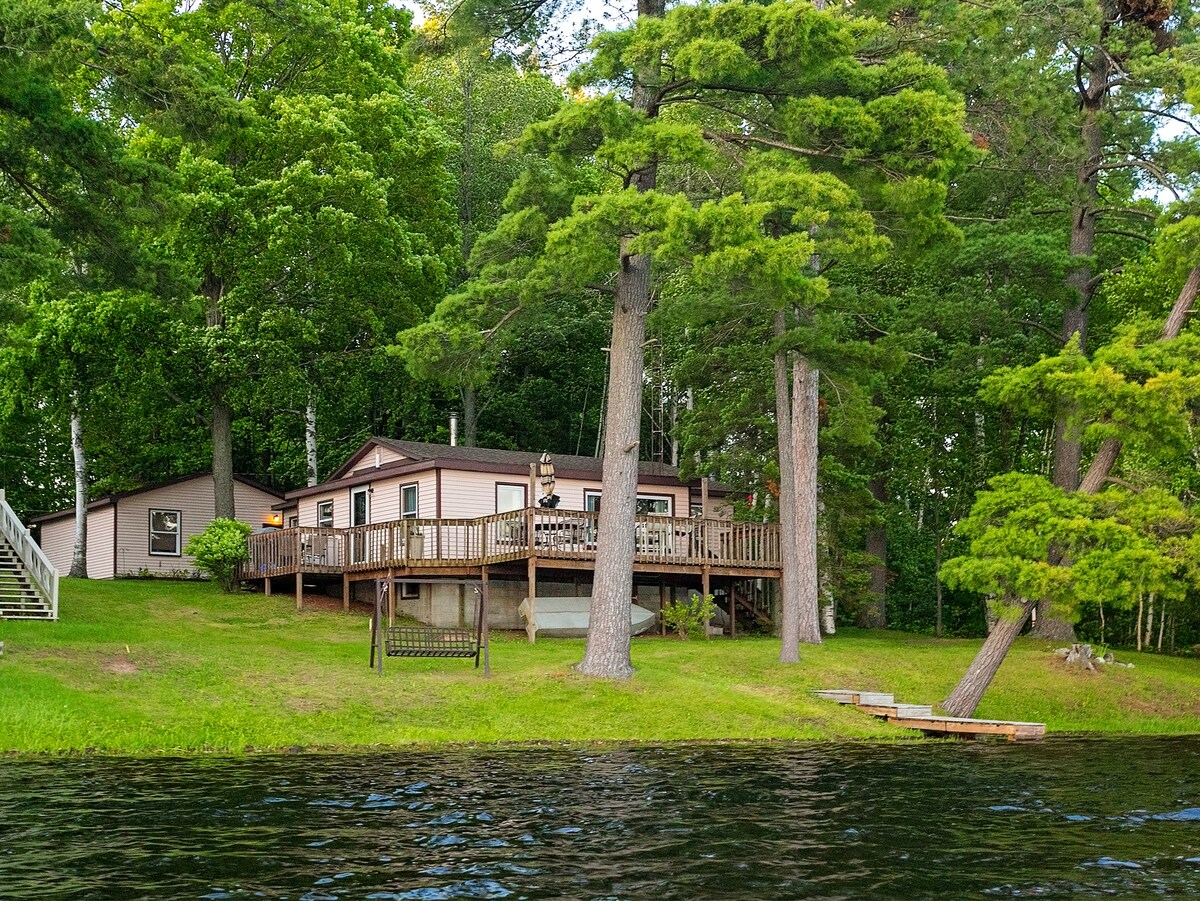 Escapada al norte de Michigan ¡Ven a alojarte y diviértete en este alquiler de 4 temporadas! Nuestro plano de piso abierto, muchos accesorios de cocina para tus necesidades creativas de cocina, un enorme ventanal para ver nuestro lago para todos los deportes y una terraza que te da una vista completa. La terraza se encuentra en lo alto dando una sensación de casa del árbol. Tenemos un barco de pesca con motor de arrastre y 2 kayaks que te ofrecerán tu propia experiencia personal del lago y 3 islas para viajar mientras exploras la naturaleza a lo largo del camino.