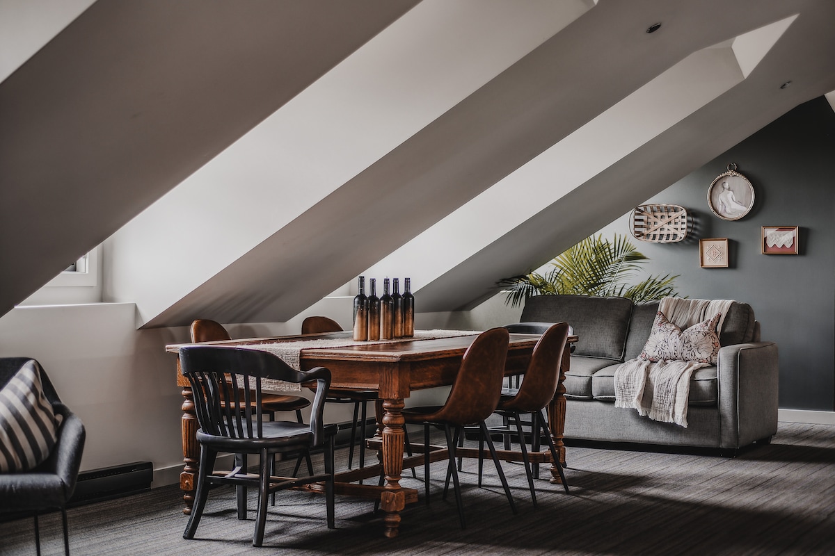 ¡Te damos la bienvenida al hotel británico en Aylmer, Quebec! Ubicado en el corazón de esta encantadora ciudad histórica, nuestro hotel del siglo XIX bellamente restaurado ofrece una mezcla perfecta de elegancia del viejo mundo y comodidad moderna. Disfruta de lujosas habitaciones con decoración vintage, wifi gratuito y ropa de cama lujosa. Disfruta de una cena gourmet en nuestro restaurante del hotel, bebe una copa de vino en el bar, lleva a tu perro al spa para perros y explora atracciones cercanas como el Aylmer Marina y Gatineau Park. Esta es una habitación de hotel privada.