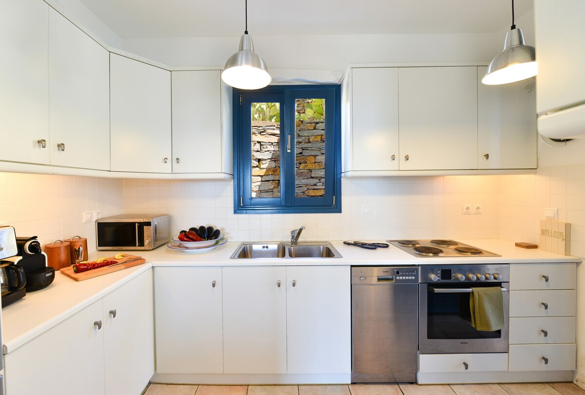Πανέμορφο τζιωτικο μοντέρνο σπιτάκι με όμορφη θέα και ηλιοβασίλεμα, ήσυχο και άνετο με προσεγμένη διακόσμηση. Σίγουρα θα το απολαύσετε και θα περάσετε όμορφα στο νησάκι μας. Beautiful cycladic rural house with modern elements and decoration that respects the greek island architecture. House with a lot of light, nice views of the horizon, sunset and the sea, very quiet, ideal for a nice greek vacation. Also, very close to the islands main shop life and 12 minutes walking to the nearest beach.