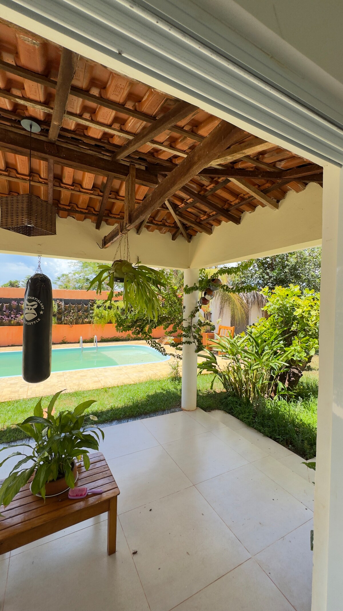 1 Suíte com ar condicionado. 1 quarto com ar condicionado, cama casal e beliche.. 1 quarto com ventilador e 2 beliches, mais vários colchões (reserva). Sala ampla e arejada com sofá, TV e Internet (Wi-Fi). Cozinha completa com todos utensílios, fogão, gás, geladeira. Jardim com area verde e gramado. Área de lazer completa com churrasqueira, fogão a lenha, pia, grelha, tábua de carne e espetos. Piscina com ducha, cascata. Banheiro area externa.