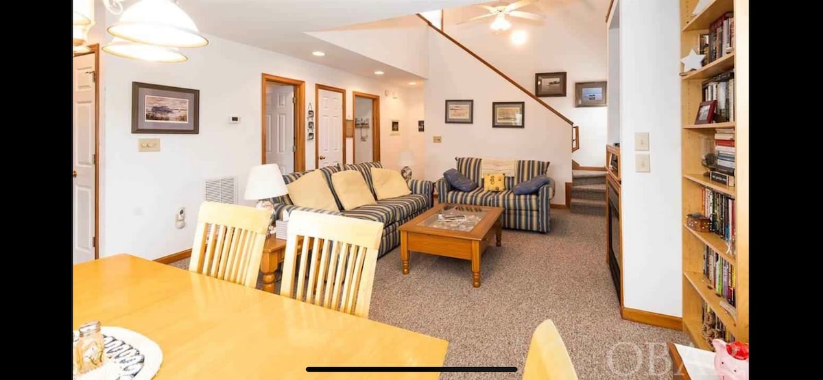 ¡Excelente ubicación para todo lo que ofrecen los Outer Banks! A minutos de la playa con múltiples puntos de acceso público. Fantástico porche cubierto. Patio para divertirse mucho en un barrio tranquilo y seguro. Dos entradas para mucho aparcamiento. Cuarto de lavado. Wifi y cable rápidos. A poca distancia a pie de rutas de senderismo y la ruta 158 para ir de compras, restaurantes y minigolf. Especias básicas proporcionadas en una cocina totalmente equipada con Keurig y cafetera de 14 tazas. Juegos y actividades divertidas para familias. Se admiten perros (2 máximo). Sin valla.