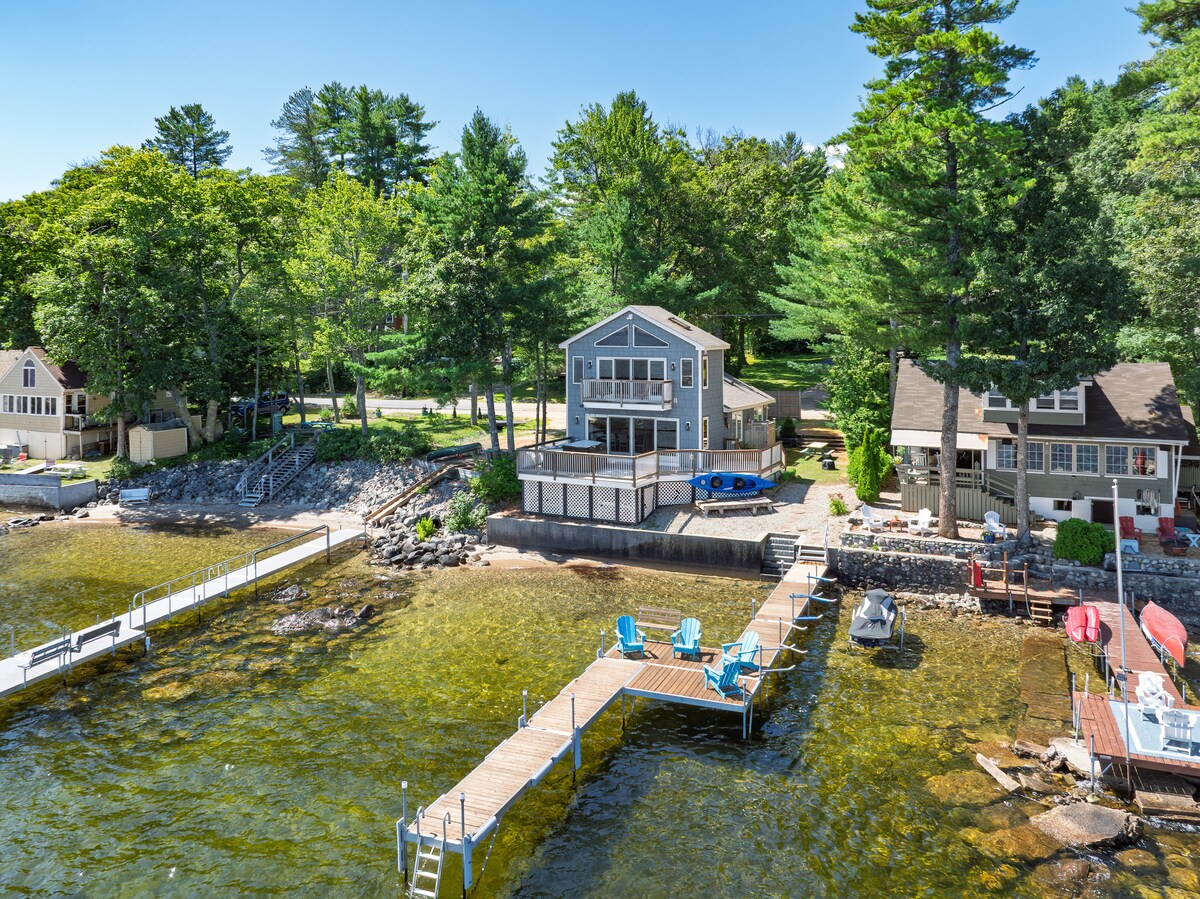 Escápese a una lujosa cabaña con paredes de vidrio y diseño privado frente al agua, ubicada en más de 3 acres aislados a lo largo del río Crooked en Naples, Maine. El río rodea la propiedad, lo que ofrece total privacidad, su propia playa de arena, un muelle con acceso directo al lago Sebago y un parque estatal a pocos minutos. Relájese durante todo el año en la bañera de hidromasaje, en la ducha al aire libre, en las hamacas o junto a la chimenea de vidrio. Baño de lujo con piso radiante y una enorme ducha a ras de suelo con ventana panorámica. Aire acondicionado, se admiten mascotas. Un refugio perfecto y tranquilo: ¡venga a recargar energías!