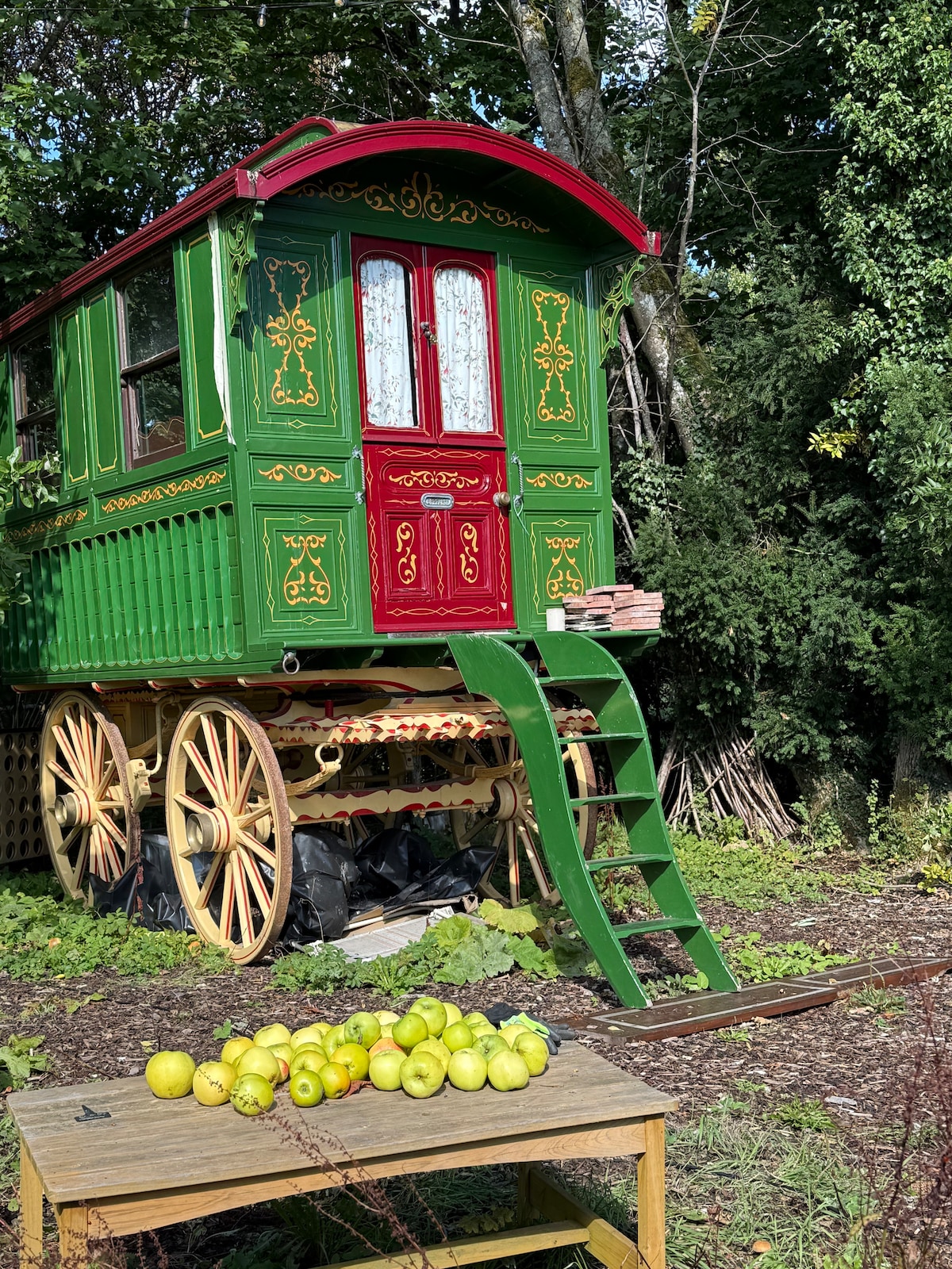 Nuestro exclusivo y acogedor carromato está hecho a mano en madera e incluye pequeños lujos dentro de un espacio rural tradicional. Cocina totalmente equipada, vitrocerámica de gas, horno y nevera. Cama doble tamaño king, ducha e inodoro. Una estufa de leña para los momentos más fríos y totalmente aislada. Relájate con nuestro lujoso jabón de leche de oveja hecho a mano. Huevos frescos de nuestras gallinas. Rodeado de nuestras ovejas y corderos en los campos, pero a poca distancia a pie del pueblo, pub o circuito. No se admiten perros ni niños.