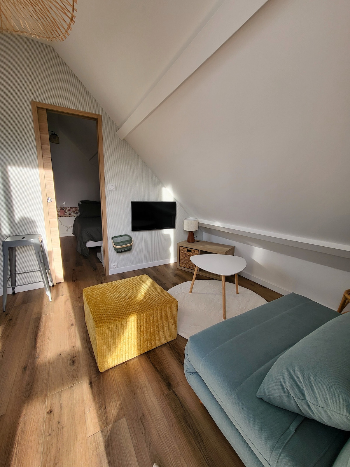 Relájate en este alojamiento privado ubicado en un entorno muy tranquilo 🌳 ; - Habitación para 2 personas con terraza en planta alta. - Baño con ducha. - Salón luminoso con cocina totalmente equipada. - Salón con televisión y sofá eléctrico. En el lado exterior, disfrute de un magnífico paisaje en el campo así como de una plaza de aparcamiento privada. - Cerca de autopistas. - A 15 minutos de Citée Europa. - 10" del lago Ardres. - 15" de la playa y del puerto de Calais.