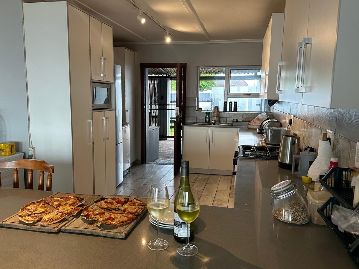 ¡Ofertas especiales disponibles bajo petición! ¡UPS para luces, TV y wifi durante el desplazamiento de carga! Impresionante casa de playa familiar con salón de planta abierta, cocina, comedor y braai interior. 5 dormitorios con 4 baños. A 200 metros a pie de las rocas con las mejores vistas del atardecer en Sudáfrica y a poca distancia a pie de la playa y el faro. Vistas panorámicas al mar desde el salón y la terraza.
