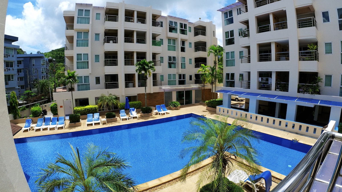 A large Worktation Studio located in Patong called The Emerald Terrace Condominium (very good oxygen/ozone, very cool in morning/evening), which is only 3 km away from the Patong beach. 47 sqm (506 sqft) is built with nice built-in 1 BR and 1 bathroom, big space, and kitchen. The unit has washer/refri/microwave/kitchen/ free hi speed WIFI (installed privately in room)/public WIFI around pool. Dryer available in building.