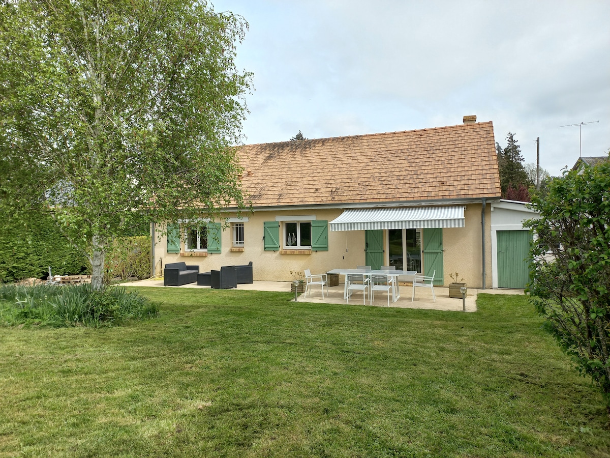 En un bonito pueblo, cerca de Giverny, al fondo del jardín, encontrará una pequeña casa de un solo piso con persianas azules, ideal para una parada tranquila y bucólica. A las puertas de Normandía; fácil acceso A13 dirección Ruan o París. Estación de tren en Vernon o Gaillon. En el pueblo; pequeño bar agradable que ofrece entrega de pan y cruasanes por la mañana bajo pedido. (todos los días excepto los lunes)