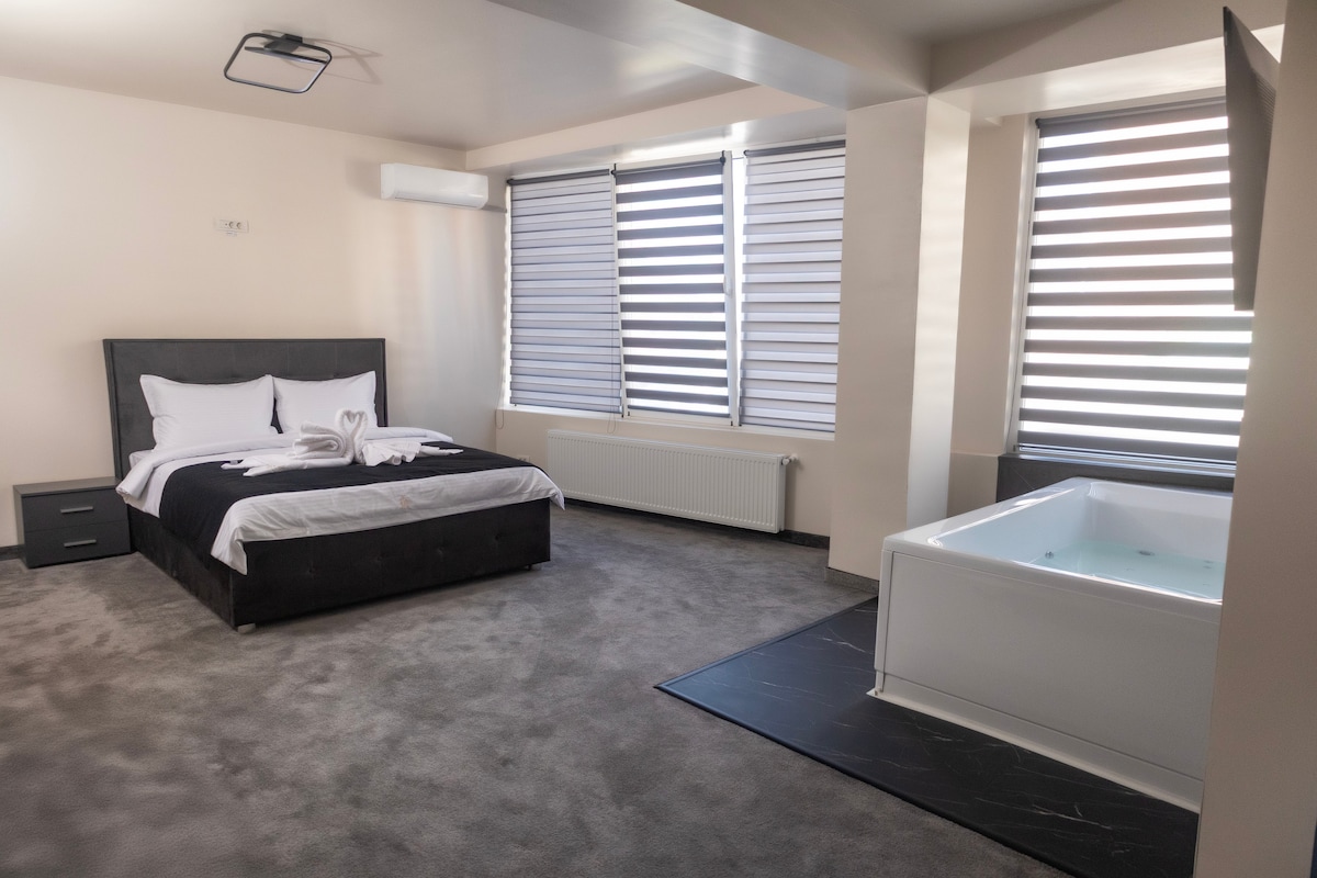 G&A Luxe Apartment Central te da la bienvenida en el corazón de Târgu Jiu, a pocos pasos del Eje Brâncuși en la Avenida de los Héroes. Ubicado en la 1.ª planta, en una zona tranquila pero céntrica, con aparcamiento privado con videovigilancia. Un apartamento moderno y elegante de 2 habitaciones con un amplio baño, balcón y cocina totalmente equipada. Servicios: wifi de alta velocidad, Netflix, Xbox, aire acondicionado y llegada autónoma a través de Smart Lock. Te garantizamos que te sentirás como en casa, con toda la comodidad y el estilo que te mereces.