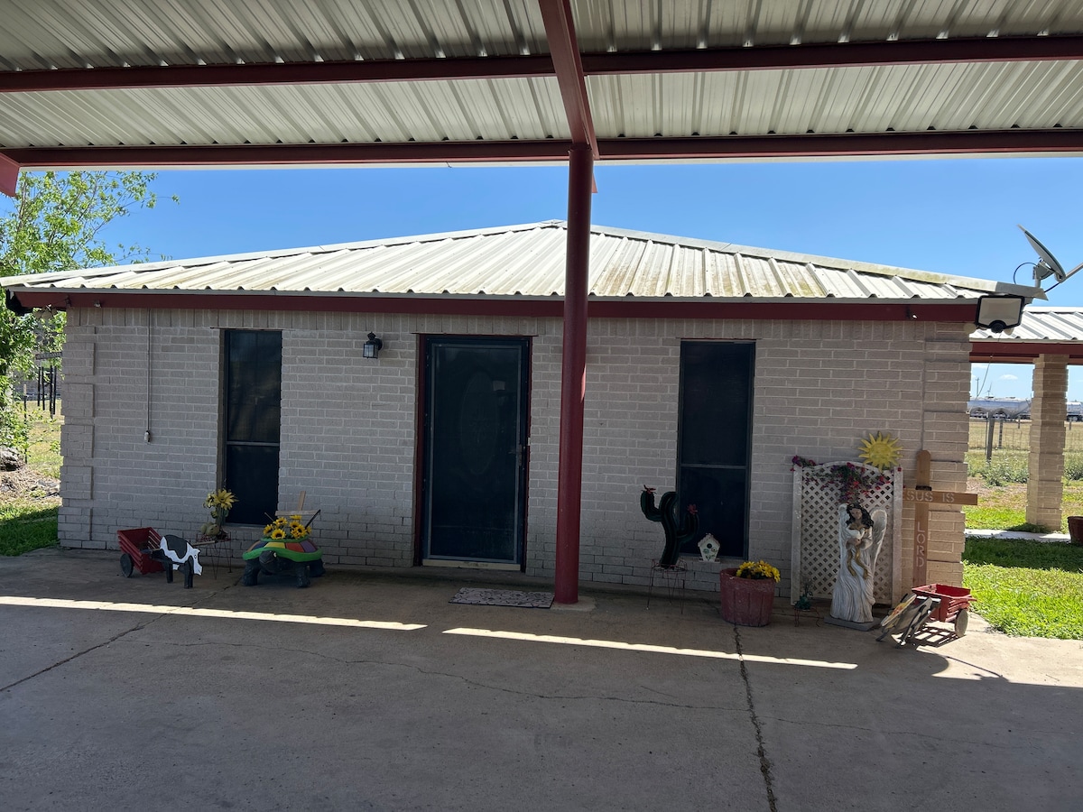 Departamento de eficiencia detrás de una casa restaurada. La propiedad está ubicada en la esquina de un vecindario histórico tranquilo, en una parte central de esta pequeña y tranquila ciudad. En el interior encontrarás una casita de 1 cama, equipada con lo básico que necesitas. A menos de una milla de Cole Park en el agua, que tiene muelle de pesca y conciertos en verano. A 1 minuto de la tienda de comestibles HEB y a 1 minuto en otra dirección de varios restaurantes locales increíbles. ¡A 1,7 millas de la playa de McGee y del centro de la ciudad! ¡Lee todos los detalles antes de reservar!