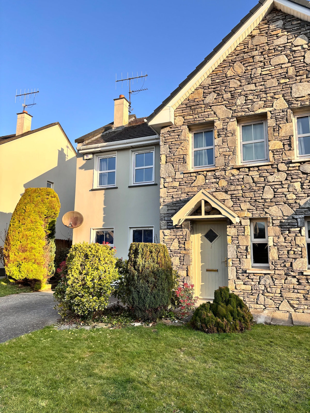 La propiedad SOLO está disponible para reservar a través de Airbnb. Amplia casa moderna, a 10 minutos a pie de la ciudad patrimonial y gourmet de Kenmare y del hotel Kenmare Bay. La ciudad ofrece una amplia variedad de cafeterías, bares y restaurantes galardonados. Zona de césped al frente. Muy buena conexión wifi/Sky TV. Idealmente situado para viajar por el Anillo de Kerry y el Anillo de Beara. No se permiten fiestas ni eventos. Ten en cuenta que esta es una zona tranquila y te rogamos que no haya ruido después de las 12 de la noche para respetar a los vecinos.