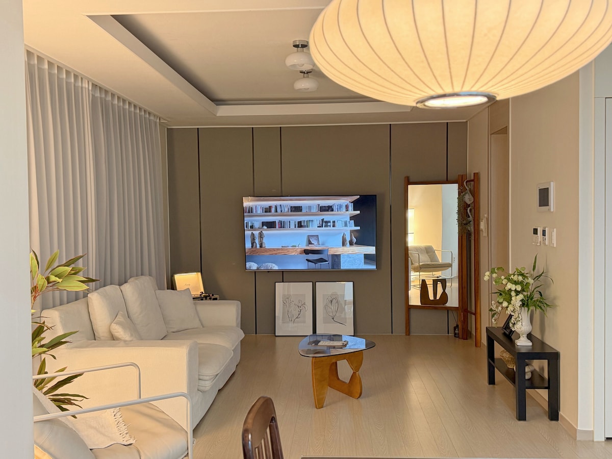 ¡Hola! Abrí uno nuevo. Sobre todo, prestaré atención a la limpieza. La ropa de cama se lava y se desinfecta todos los días y se reemplaza. Puedes confiar y estar seguro.😊 Nos centramos en la ropa de cama y el interior agradables para enfatizar el ambiente cómodo y lujoso como si estuvieras en una cafetería y un hotel. La sala de estar no es muy estrecha❗️ 🤍Gran proyector de haz de pantalla de 100 pulgadas Ott disponible 🤍 Se proporcionan 2🤍 botellas de agua de 500 ml 📍Netflix YouTube Premium proporcionado Espero que disfrutes de un gran cine en casa con una cama cómoda y música de CD en mi alojamiento, una taza de café, un proyector de haz transparente (instalado por el huésped X) y crear hermosos recuerdos. ¡No dudes en dormir hasta tarde a un ritmo pausado! La hora de salida es a la 1:00 p. m. ¡Estacionamiento gratuito! Resolveremos tus preocupaciones de estacionamiento a tu propio costo. Si tocas en❗️ mi perfil, también hay otros alojamientos disponibles. Todos ellos son operados con cuidado tanto como sea posible por el propio anfitrión. Ven a jugar.🩵