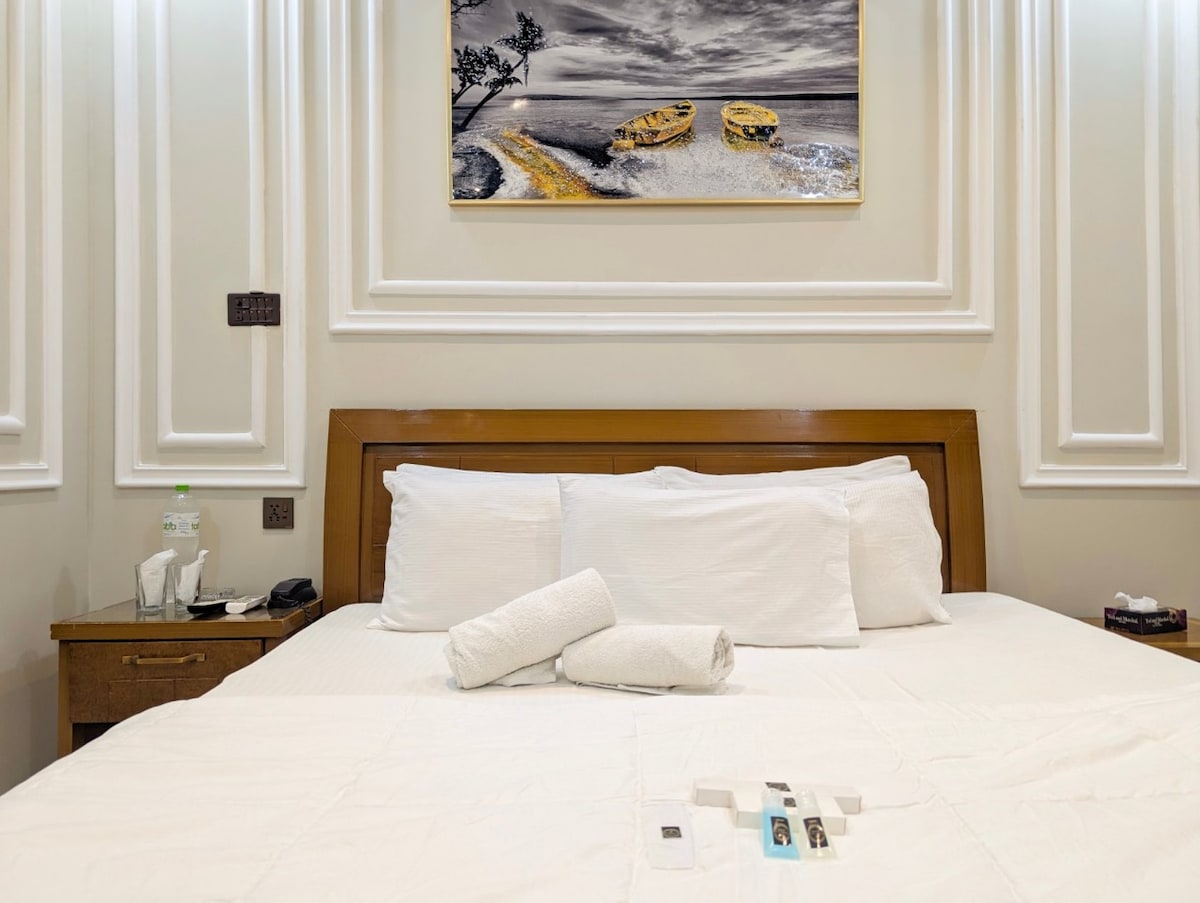 Enjoy a comfortable stay in our well-appointed room featuring a king-size master bed and an additional single bed, perfect for up to three guests. Located in the heart of Sukkur, the hotel offers top-notch services and an on-site restaurant for a delightful dining experience.