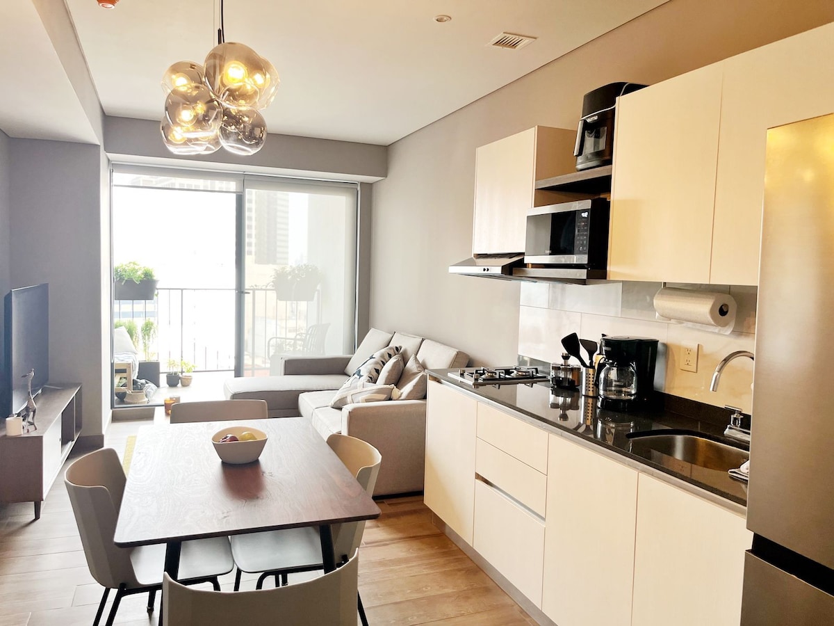 APT de lujo de 1 dormitorio para 4 personas | Piscina en la azotea, gimnasio, aire acondicionado y TV