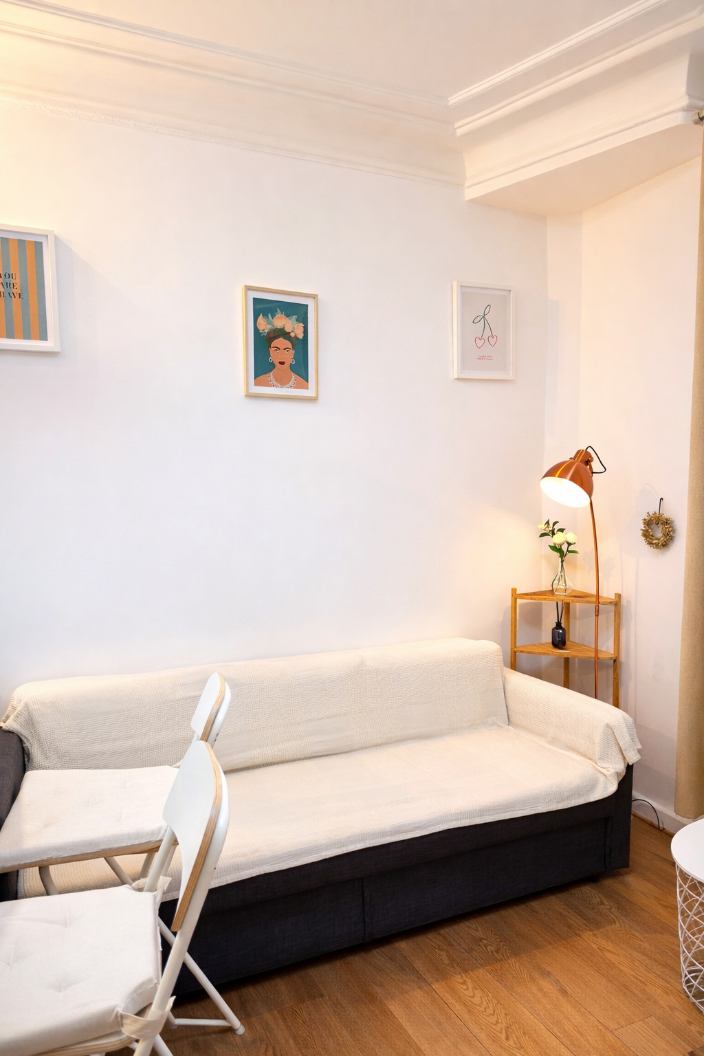 Profiter de ce Studio lumineux et tout équipé pour un séjour comme à la maison au plein cœur de Montmartre. Localisation idéale pour découvrir ce quartier atypique. Vous disposerez d'une cuisine toute équipée, d'une salle de bain avec WC, d'un grand lit taille Queen Size, d'un espace salon avec canapé lit dépliable et une table à manger pour partager de bon repas fait maison. Possibilité de laisser les bagages sur place (réception) avant le check-in et après le check-out.