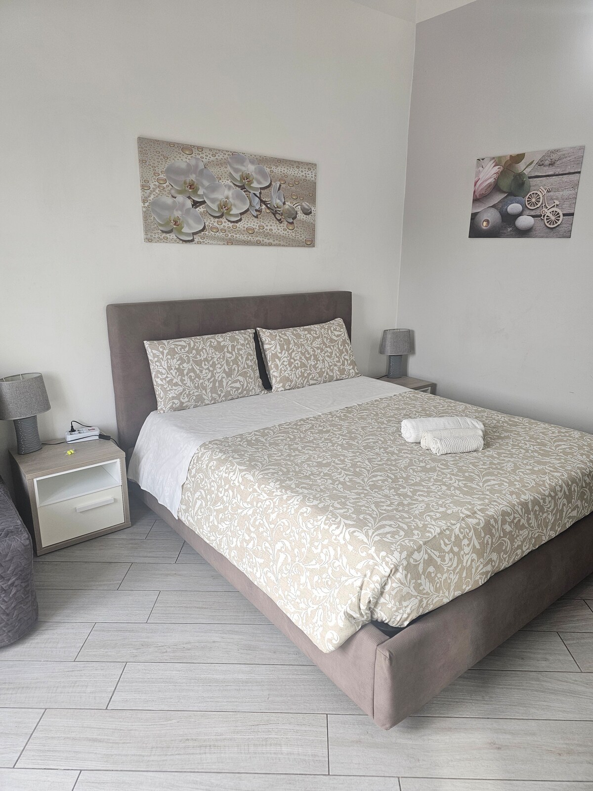 Es un cómodo apartamento, en una segunda planta sin ascensor, que consta de dos grandes dormitorios y una amplia cocina-sala de estar. Las grandes ventanales hacen que las habitaciones sean luminosas, y una reciente reforma lo ha equipado con todas las comodidades de la vida moderna. Su ubicación permite llegar fácilmente a pie a los principales monumentos de Catania: a pocos pasos se puede admirar la catedral y la fuente de Amenano; para los amantes del barroco: el Palacio Biscari y las antiguas iglesias de Via Crociferi.