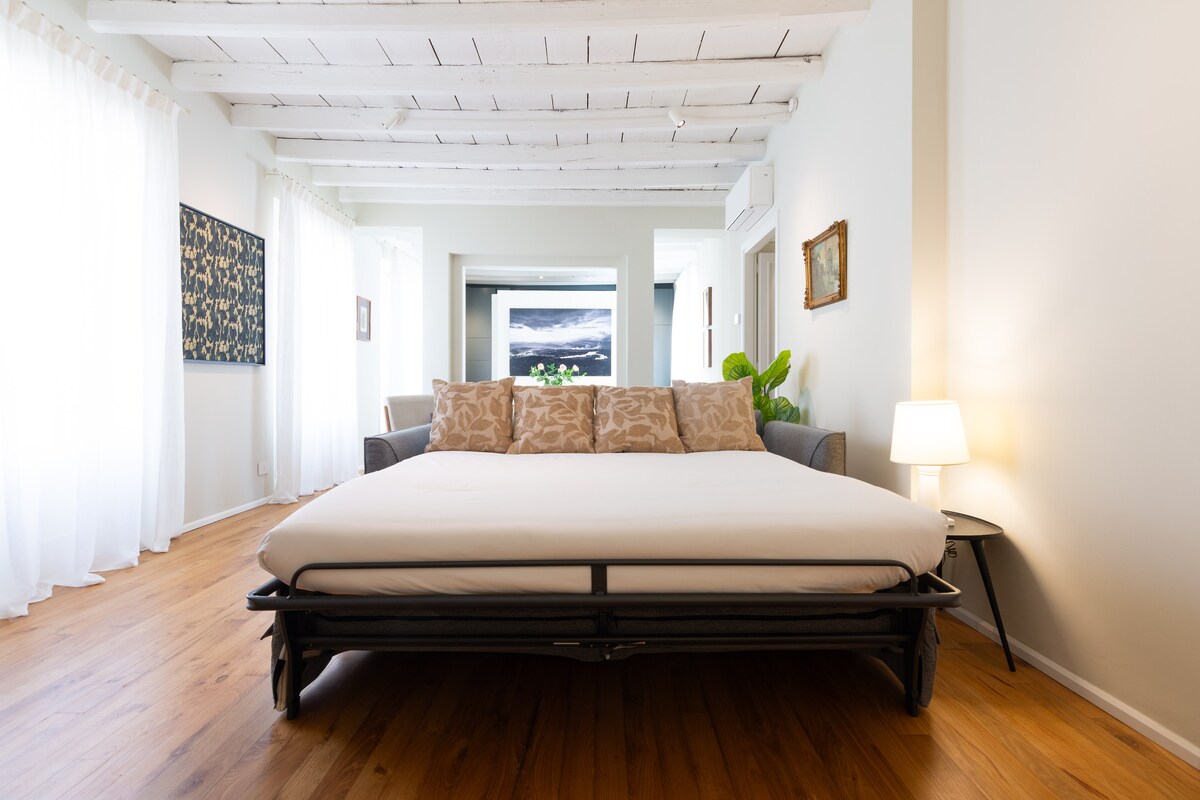 IN ONE OF THE MOST PRESTIGIOUS AREAS IN THE CENTER OF MILAN: ELEGANT APARTMENT located on Via Falcone, just a 2-minute walk from Piazza Duomo and the city’s main attractions. Stylish and functional apartment, carefully furnished to ensure a comfortable stay. It features a bedroom with a double bed, a living room with a double sofa bed, a kitchenette, and a bathroom. Air conditioning and Wi-Fi available throughout the apartment.