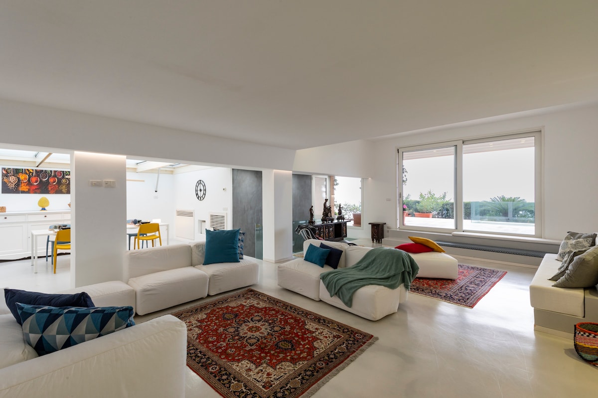 Ático luminoso en el corazón del centro histórico de Palermo, en el quinto piso de un edificio de principios del siglo XX con ascensor. El apartamento se caracteriza por una gran terraza privada de más de 100 metros cuadrados desde la que los huéspedes pueden disfrutar de las vistas sobre los tejados del barrio de Kalsa y el mar del renovado puerto de Palermo. El espacio exterior es el lugar ideal para quienes deseen relajarse al aire libre, tomar el sol en la terraza, almorzar al aire libre o hacer una barbacoa bajo las estrellas.