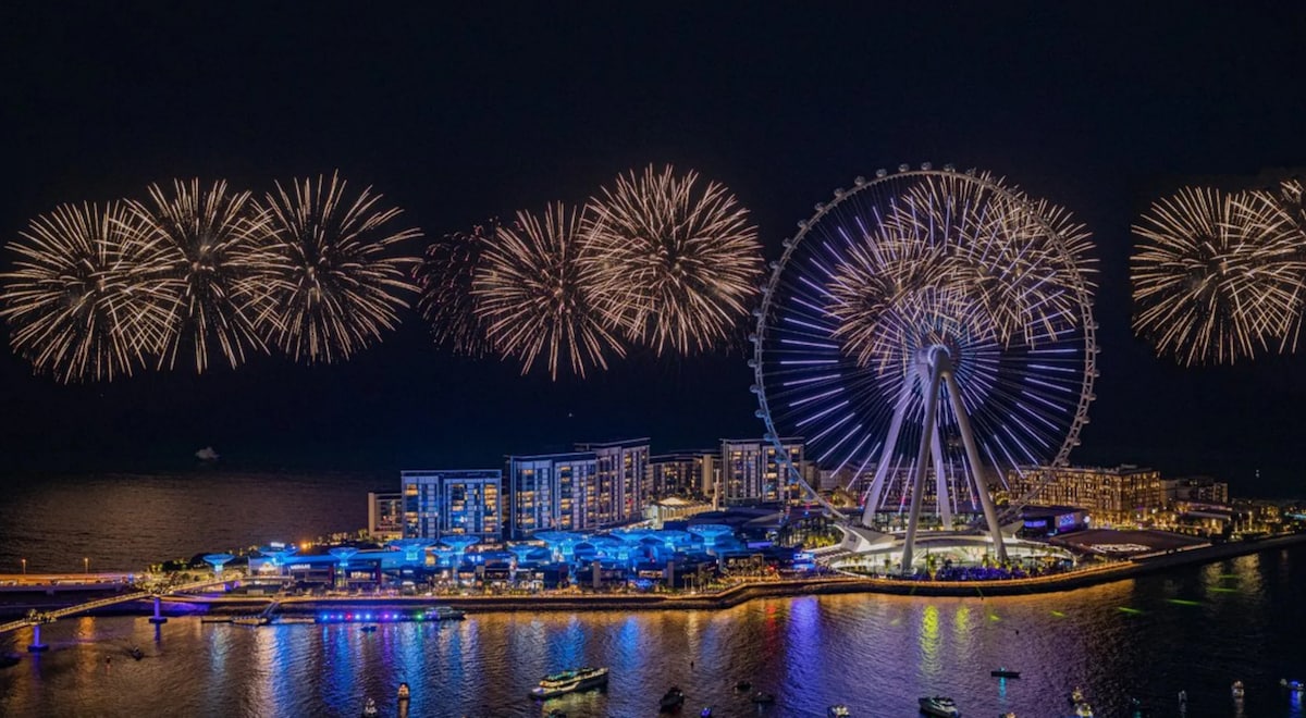 Fuegos artificiales de NYE Dubai Eye #SKY HIGH 2 BR# Marina+JBR