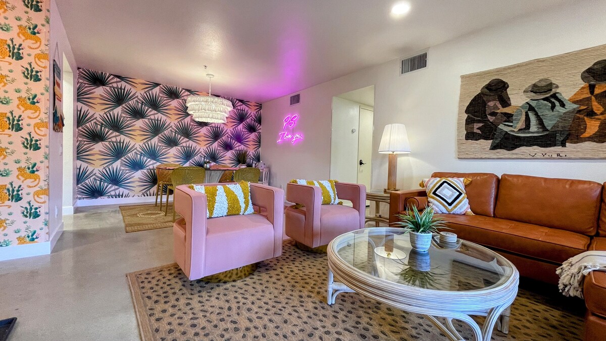 ¡Alojamiento favorito de los huéspedes! Este apartamento de última planta bellamente diseñado se encuentra en el centro de Palm Springs y está a solo unos minutos de los mejores restaurantes, bares y el casino Agua Caliente. La unidad está completa con acabados de diseño y hace que sea la escapada perfecta al desierto para un fin de semana largo o una estancia prolongada. Ubicado en la famosa Biarritz, los huéspedes pueden disfrutar de una vida de resort con entrada segura, estacionamiento cubierto, piscina, spa y canchas de tenis. Ciudad de Palm Springs ID #4508.