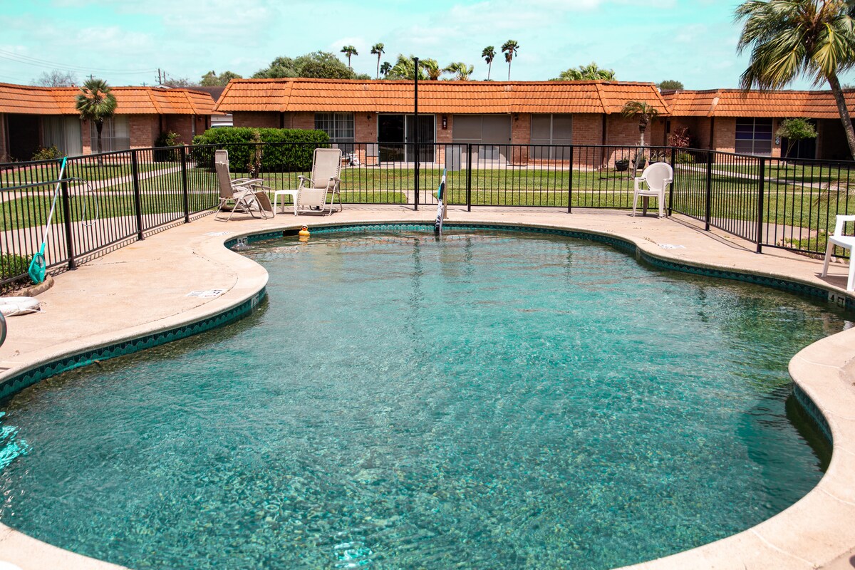 Este alojamiento es una casa de huéspedes ubicada en las afueras de Harlingen, Texas. Es muy tranquilo, ya que está fuera de los límites de la ciudad, pero aún así muy cerca de restaurantes, tiendas, etc. A solo 4 minutos en coche. Tendrás acceso a la piscina y a los muebles de exterior, así como a una parrilla de carbón. También está a 45 minutos en coche de South Padre Island y a 35 minutos en coche de la gran ciudad de Mcallen, Tx. y a 15 minutos de los outlets de Mercedes Tx.