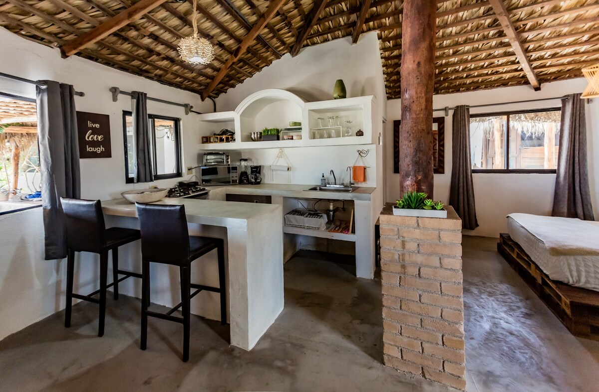 Este acogedor alojamiento se encuentra en la pintoresca y tranquila zona de Gringos Hills. Es un estudio nuevo, diseñado para ofrecer el máximo confort, y su mayor atractivo es su proximidad al mar, a solo 10 minutos a pie. La playa cercana es un paraíso para surfistas, con famosos puntos como Zippers, Pescadito y La Roca, todos accesibles a corta distancia caminando.