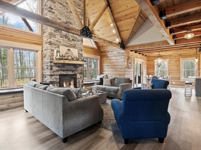 Just 11 mile from Bristol Mountain, this unique cabin sits on top of a hill overlooking 100 acers of woods and fields. Relax and enjoy everything the cabin and property have to offer with 2.5 miles of walking trails, a large back deck, two fire pits and much more. Located in the Finger lakes Region offers easy access to many wineries, breweries, distilleries, antique stores, and shops. Rochester is 25 miles away and Victor is 8 miles.