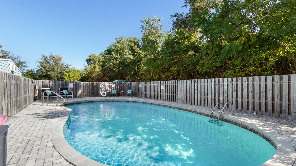 - ¡Casa con PISCINA! (climatizada) - Ubicado en el histórico St. Andrews. - SALA DE JUEGOS. - A poca distancia a pie de increíbles restaurantes, bares y tiendas de propiedad local. - Equipado con todos los elementos esenciales. - A 15 minutos del acceso público a la playa más cercana y del parque estatal de St. Andrews. - Cocina de tamaño completo. - 2 baños. - Amplio espacio al aire libre. - Patio vallado. - En la entrada cabe una caravana o hasta 5 coches. - Capacidad para 8 personas. Centro de la ciudad * Ajetreo y bullicio * PUEDE HABER RUIDO