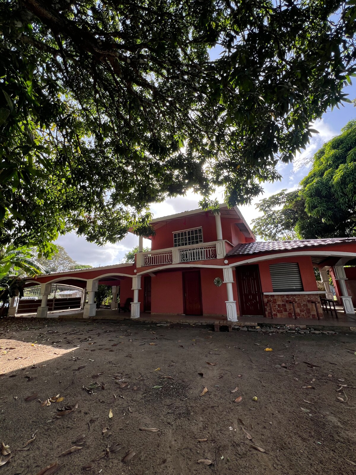 Te quedas en nuestra casa de huéspedes en el río Chagres, en el pueblo Santa Rosa. es una casa de piedra con un hermoso rancho panamá encima, por lo que la casa se mantiene agradable y fresca. En nuestro jardín tienes grandes árboles con muchas aves como loros. Por la mañana podrás escuchar a los monos al otro lado y podrás explorar la zona en canoa. O darte un chapuzón en el río para refrescarte. Un barco a Gamboa o al Canal de Panamá está a 20 minutos en barco.
