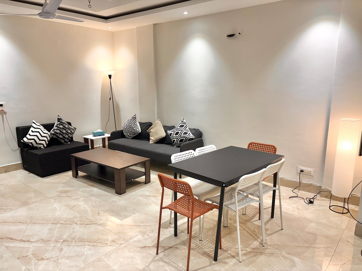 Luxe 3BHK |AC-Cafes-Ntflix-Cocina-Balc|Nr Aeropuerto