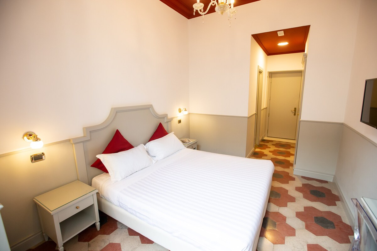 Camera matrimoniale nell'elegante boutique di poche camere nel centro storico di Roma, tra Colosseo e Termini vicino a Fontana di Trevi e Piazza di Spagna. Roman Holidays si trova nel quartiere Monti, nell'edificio del 1884, a pochi minuti dalla Stazione Termini e principali attrazioni turistiche, facilmente raggiungibili a piedi. L'ambiente riservato con poche camere dall'arredamento raffinato e moderno