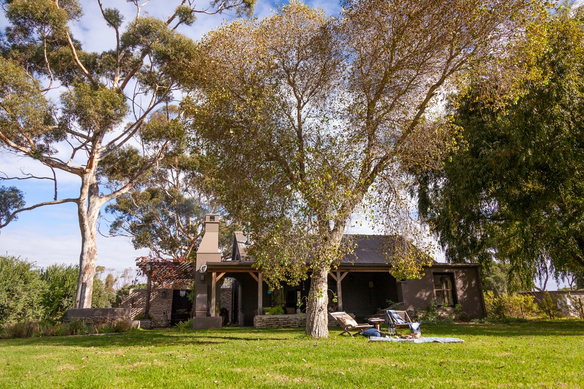 Un pequeño bosque en el corazón de las tierras vinícolas abraza esta joya secreta #jangroentjiecottage cerca de una presa alimentada por los fynbos cubiertos Helderberg. Un escondite independiente con capacidad para dos personas con chimenea, braai y jacuzzi de leña. A poca distancia a pie de Taaibosch, Pink Valley y Avontuur Wine y de la granja de caballos. Al otro lado de la R44, Ken Forrester Wines es tentador. Para los entusiastas del aire libre, Helderberg ofrece senderos para practicar senderismo y ciclismo de montaña y nuestra presa cubre natación, remo y puestas de sol.
