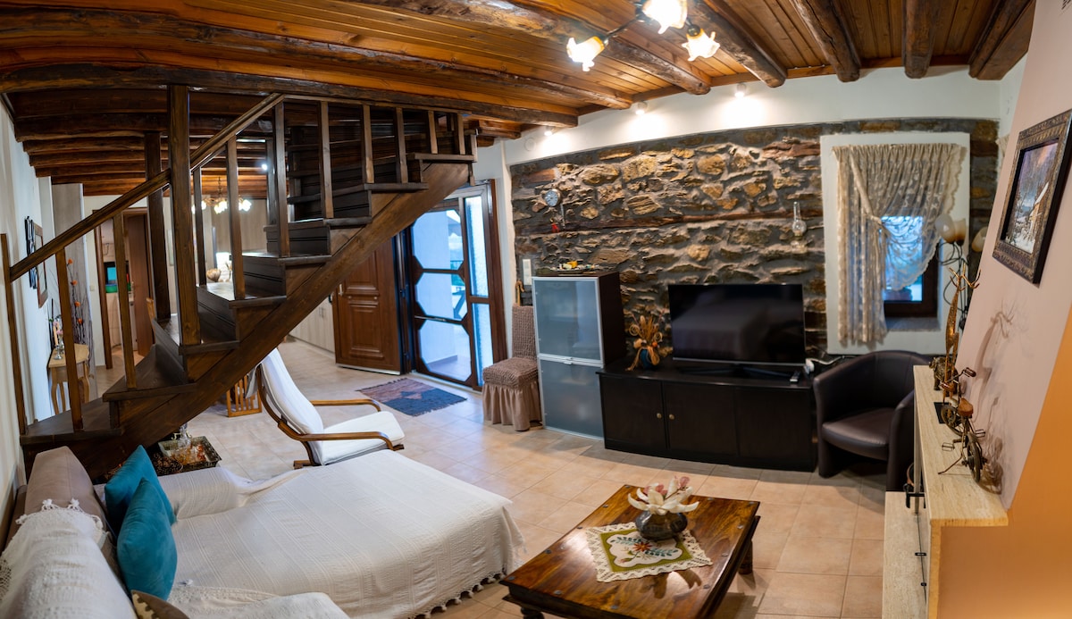 Relájate con toda la familia en este tranquilo lugar para alojarse. Villa Tzeni logra equilibrar la arquitectura local y las comodidades modernas que requiere una hospitalidad relajada. La ubicación es ideal para disfrutar de las cumbres del Monte Olimpo. El centro del antiguo Panteleimonas está a 200 m, mientras que el mar está a 10 minutos en coche. Las habitaciones tienen muebles de madera y paredes de piedra. Tiene 3 chimeneas, 2 habitaciones, un baño grande y un aseo. Una opción adecuada para todas las estaciones.