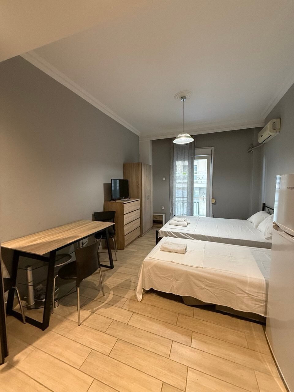 Departamento con remodelación y mobiliario completo (70 s.q.). Ofrece 2 dormitorios, 1 baño y sala de estar-cocina. Se encuentra cerca del centro de la ciudad, y en particular a 7 minutos a pie. Además, está disponible wifi, 2 aire acondicionado, 2 televisores, equipo de cocina y otras cosas necesarias. Puedes disfrutar del mar caminando a solo 100 metros. Hay café y té gratuitos disponibles en el apartamento.