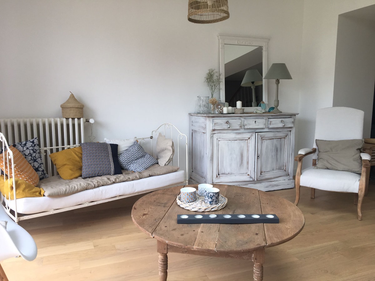 Estamos encantados de darle la bienvenida en una pequeña casa muy cerca de la playa más hermosa de Saint-Malo. El lugar ofrece: 1 dormitorio acogedor (cama de 160 cm) – 1 dormitorio en el altillo (cama de 140 cm) – 1 sala de estar – 1 cocina – 1 baño – 1 aseo separado. Aparcamiento gratuito en la calle, siempre hay plazas disponibles cerca. Además, todo está a poca distancia a pie: - Panadería = 100 m - Plage du Sillon & Thermes Marins (SPA) = 350 m - Supermercado = 600 m - Mercado local = 700 m - Estación de tren = 1 km